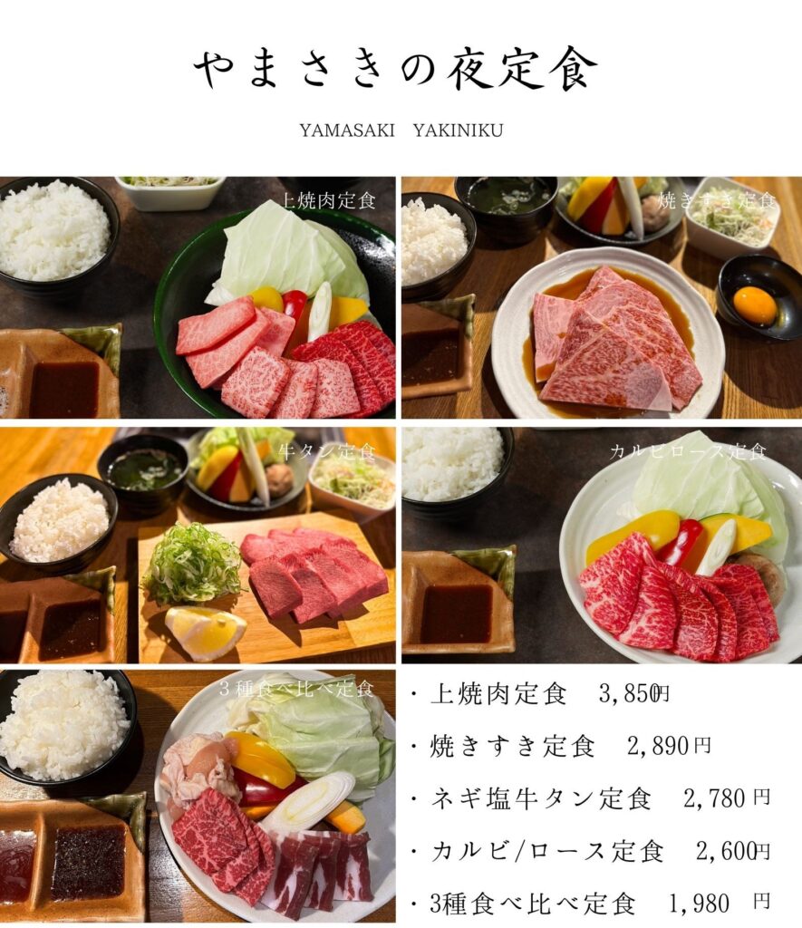 焼肉定食 全てに(ご飯・スープ・サラダ付き)1980円~